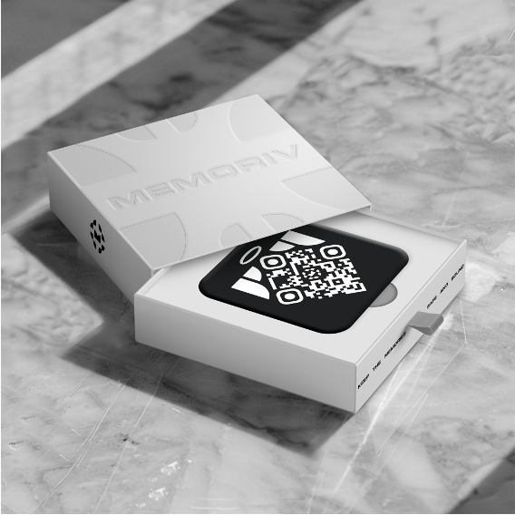 This square medallion marks the beginning of Memoriv. Crafted from durable aluminum and finished with precise laser engraving, each piece features our signature QR code, giving every medallion a refined and personal character. Measuring 6 × 6 cm with a 1 mm thickness, it combines strength, elegance, and timeless design.