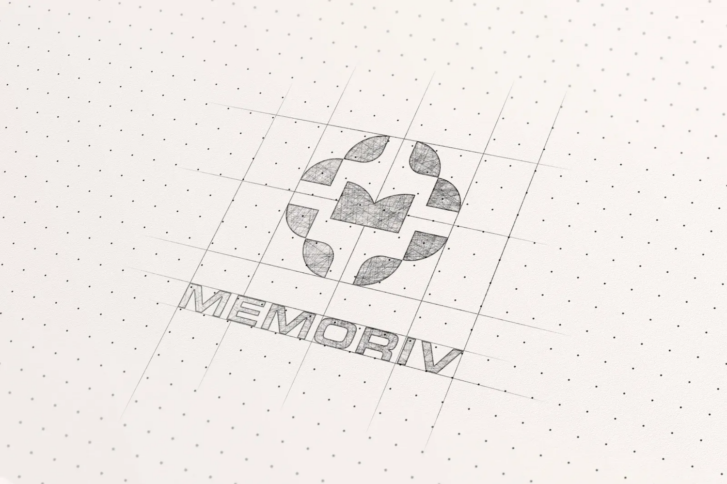 We began by defining how Memoriv should be seen by the world. Working with professional designers, we carefully shaped our logo — the visual symbol of who we are. Below are the first concept sketches that brought this identity to life.