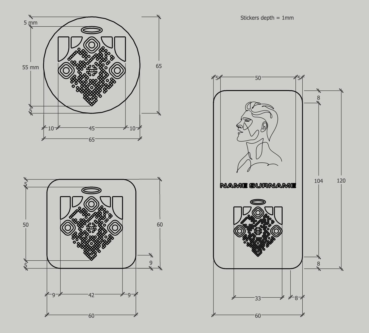After developing our first two medallions, we set out to create something truly personal. This variation features a custom portrait crafted in the one-line drawing style — an elegant art form created with a single continuous line. Our artists design each portrait from the photos you provide, with dedicated space for the person’s name. Measuring 12 × 6 cm with a 1 mm thickness, this is our most intricate and expressive medallion.